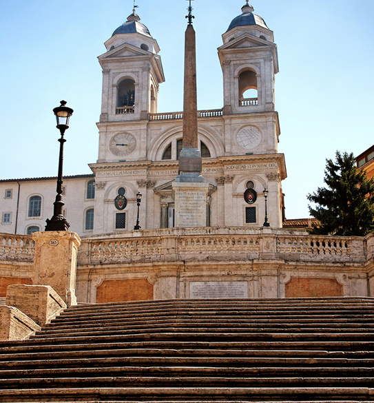 Poco più a ovest l’imponente scalinata di Trinità dei Monti si getta in Piazza di Spagna e accompagna verso via Condotti, fulcro dell’alta moda italiana, con le boutique più lussuose e rinomate al mondo.