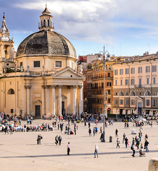 Non lontano Piazza del Popolo accoglie con i suoi 16000 m2 pedonali e offre una solenne panoramica del Pincio.