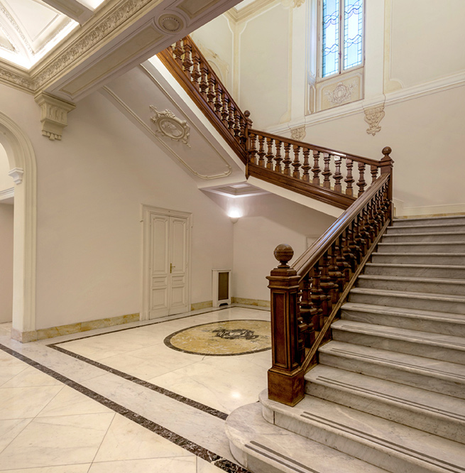 Come all’esterno, così anche all’interno, le decorazioni originali e l’eleganza degli stucchi rendono questo edificio prestigioso e memorabile.